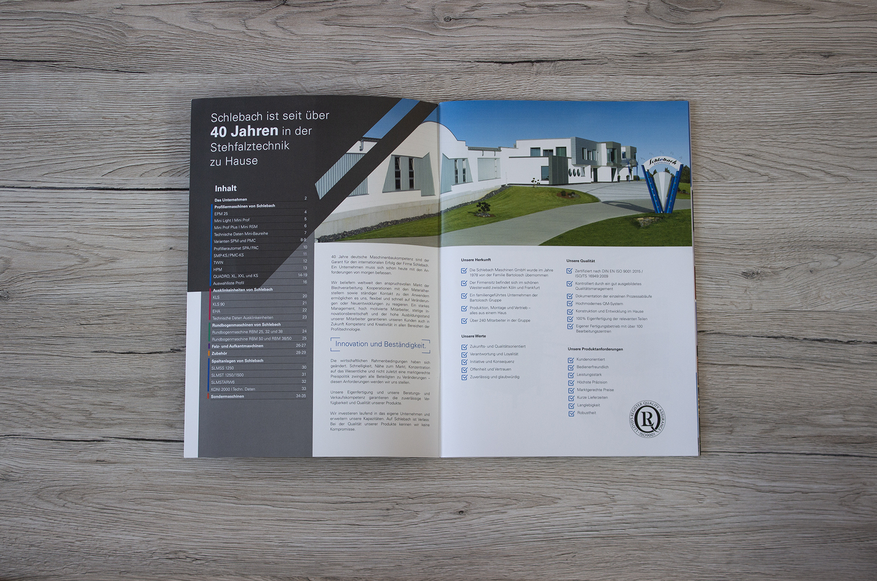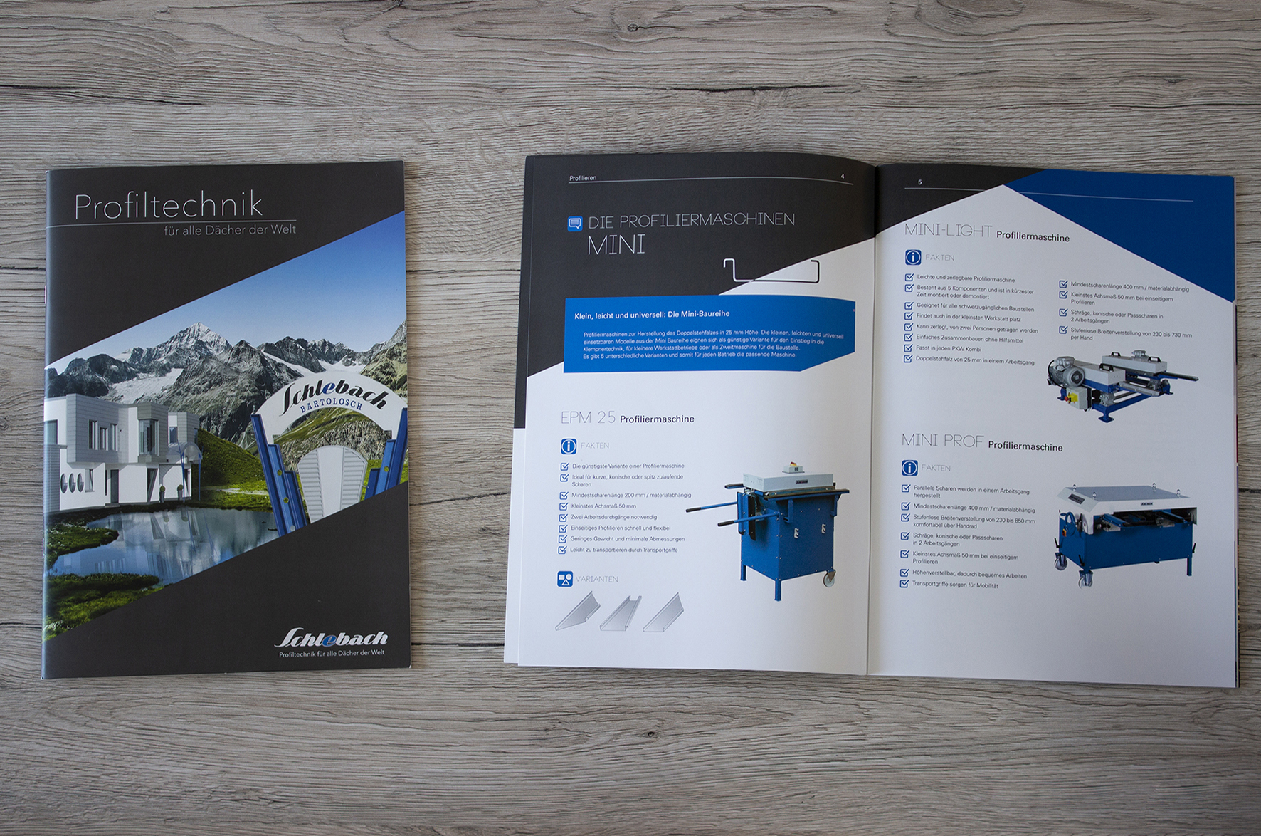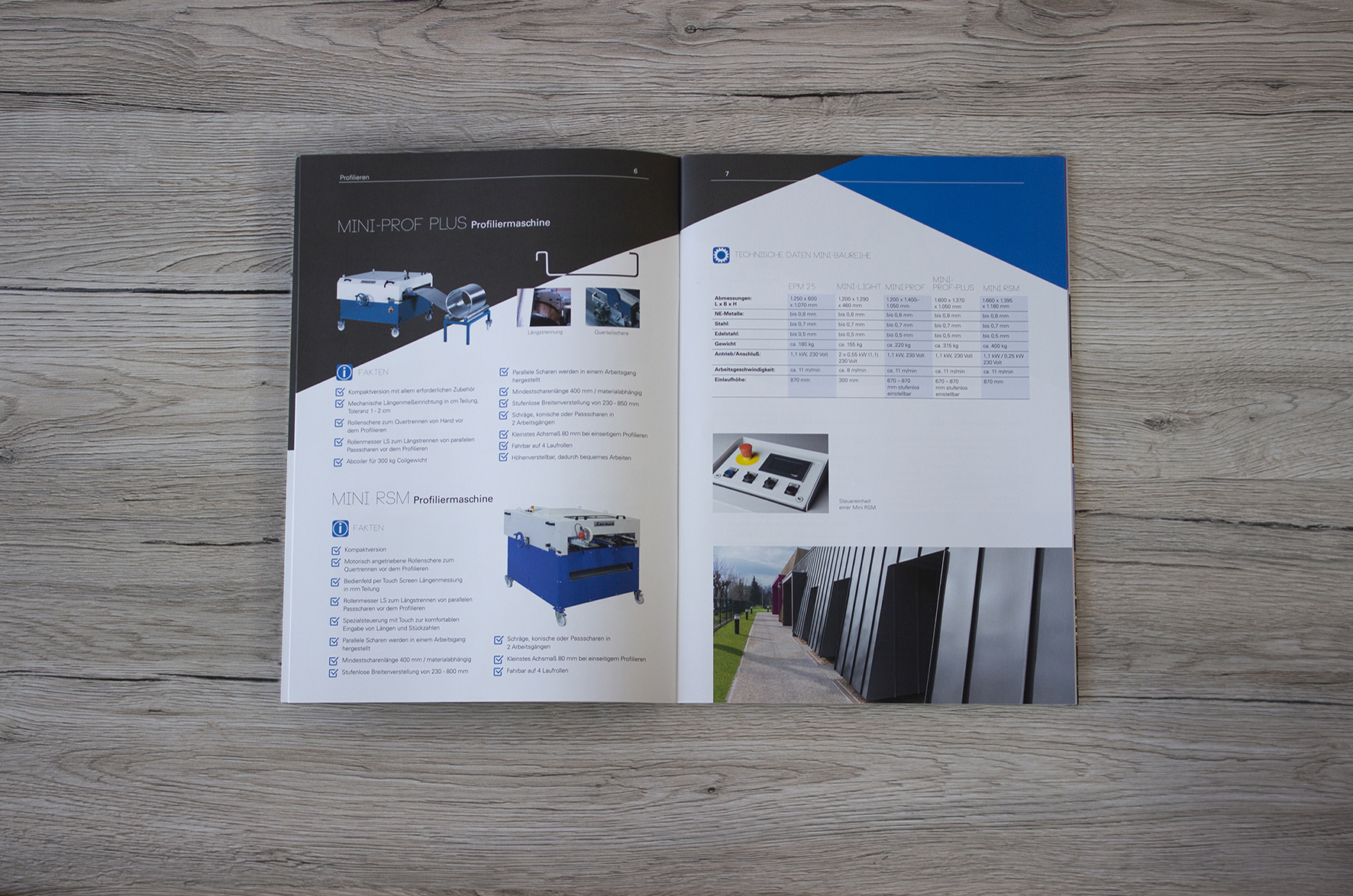 In der Broschüre werden alle Maschinen schön präsentiert und nach Rubriken farblich getrennt