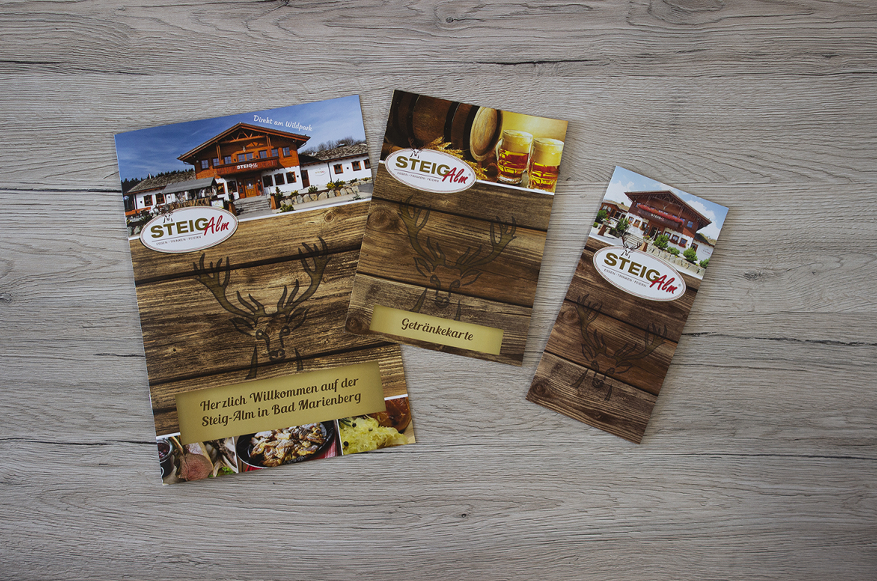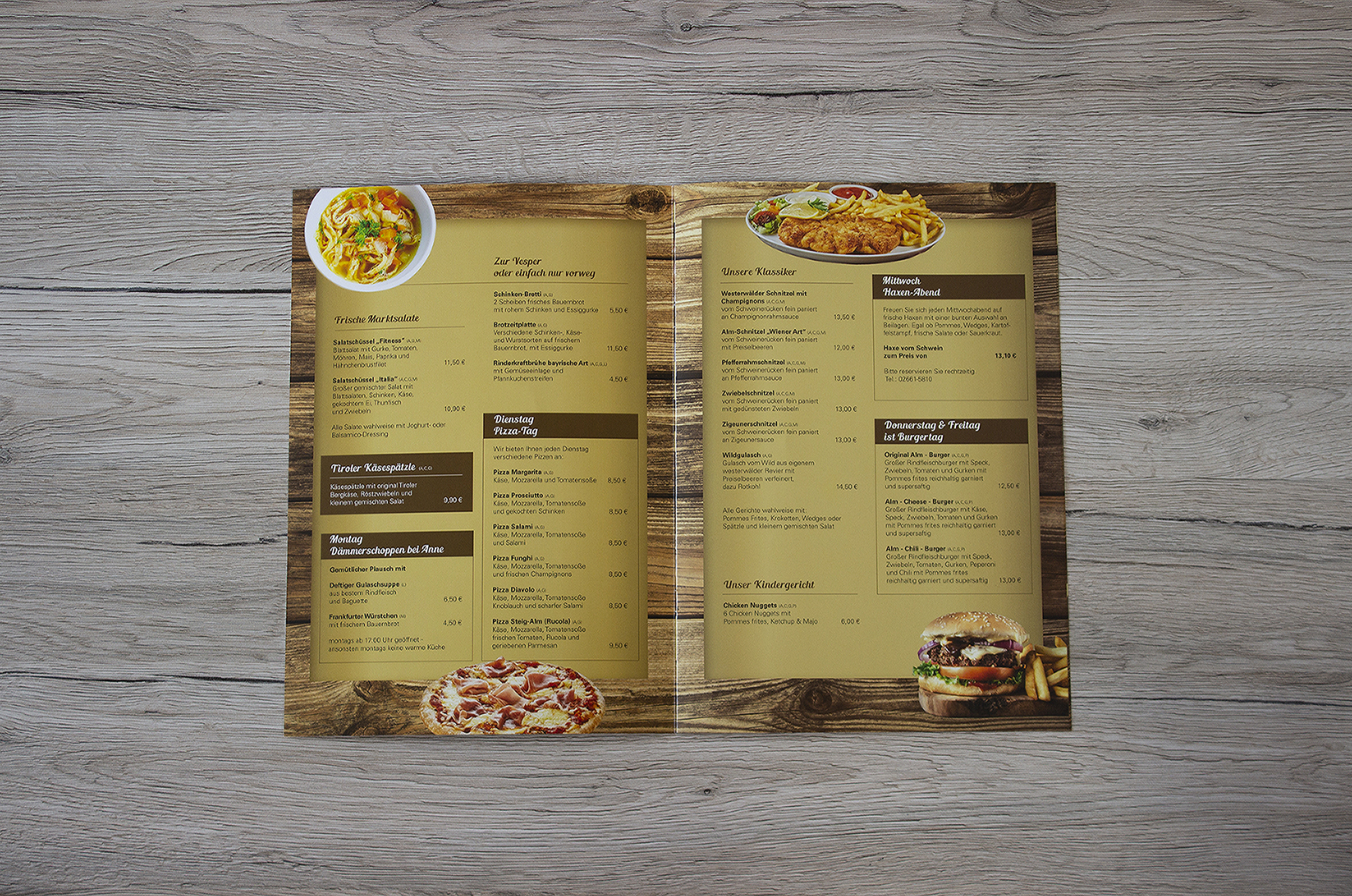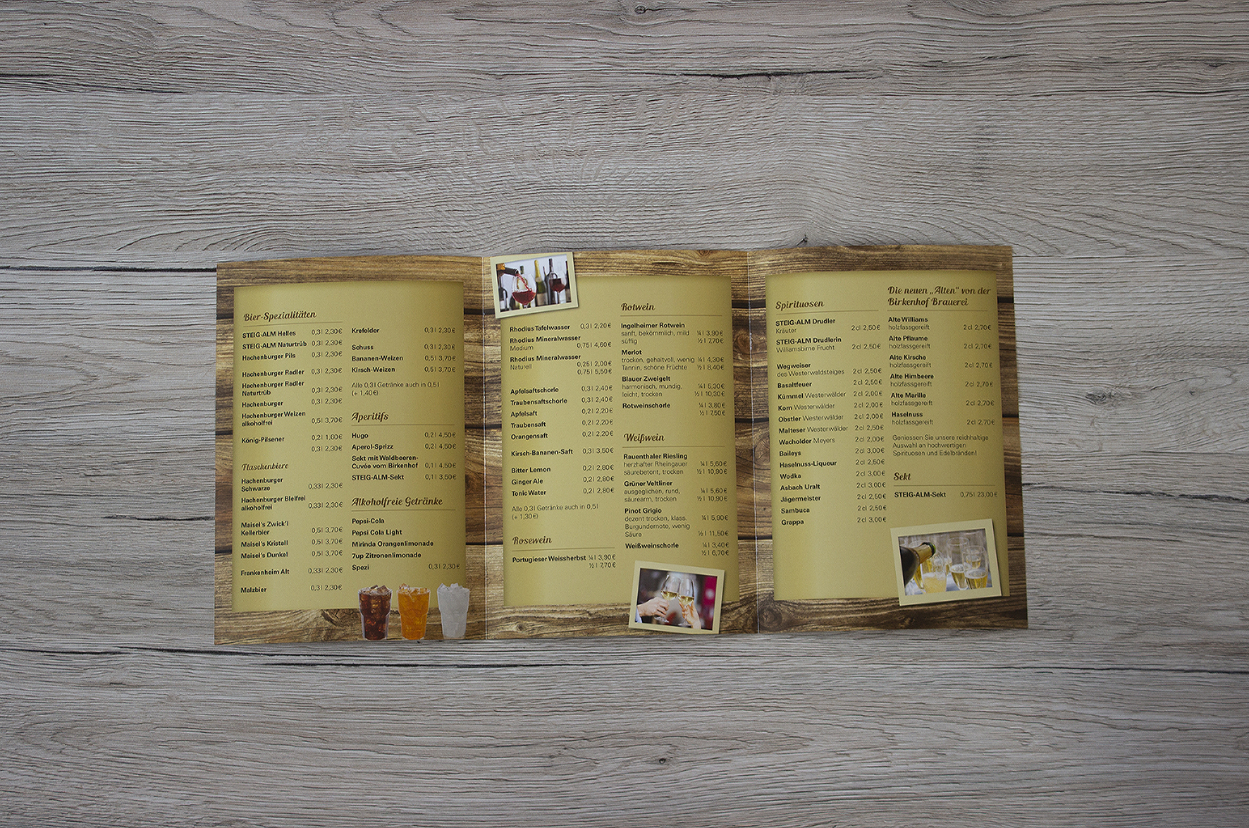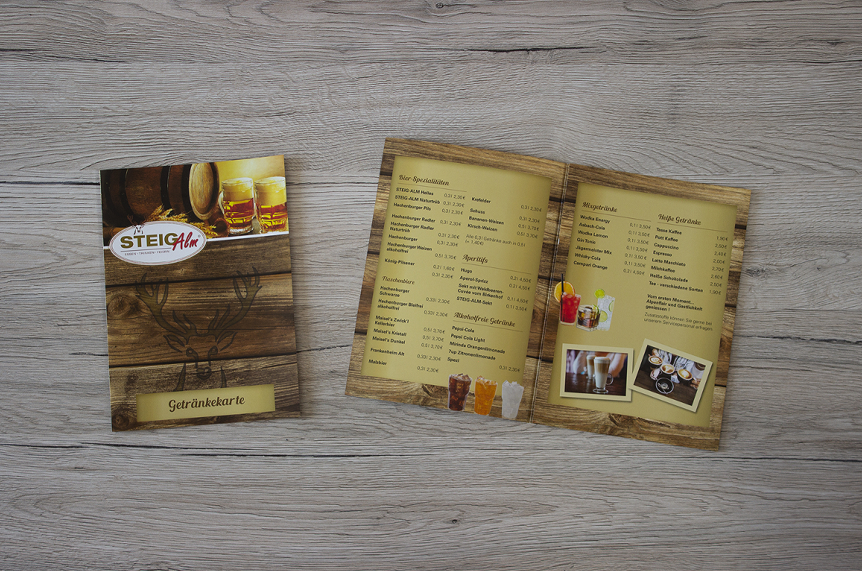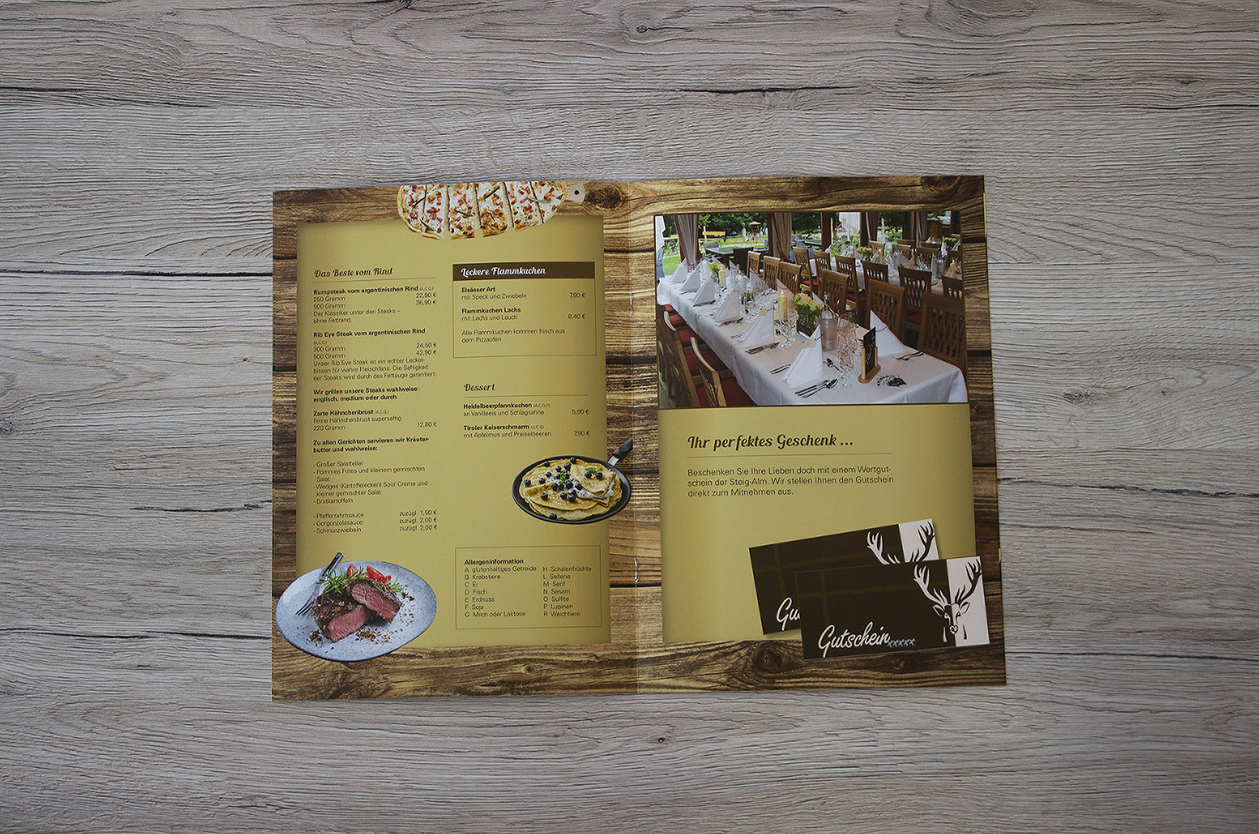 Eine rustikale Speisekarte, die den Alm-Flair wiederspiegelt