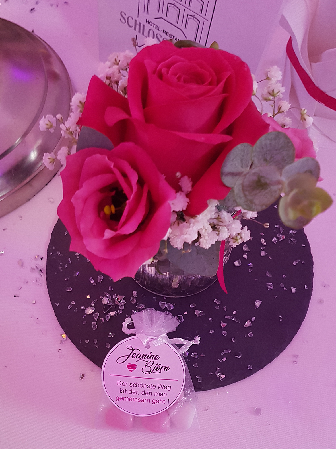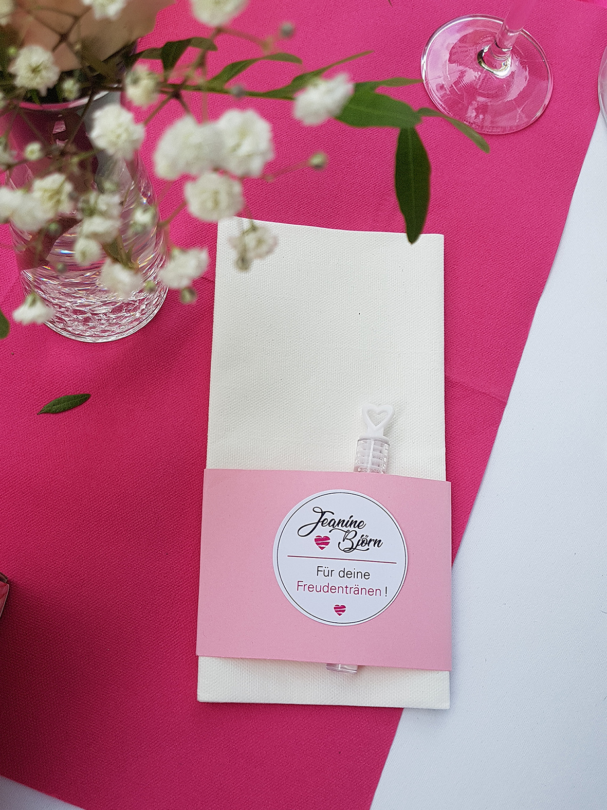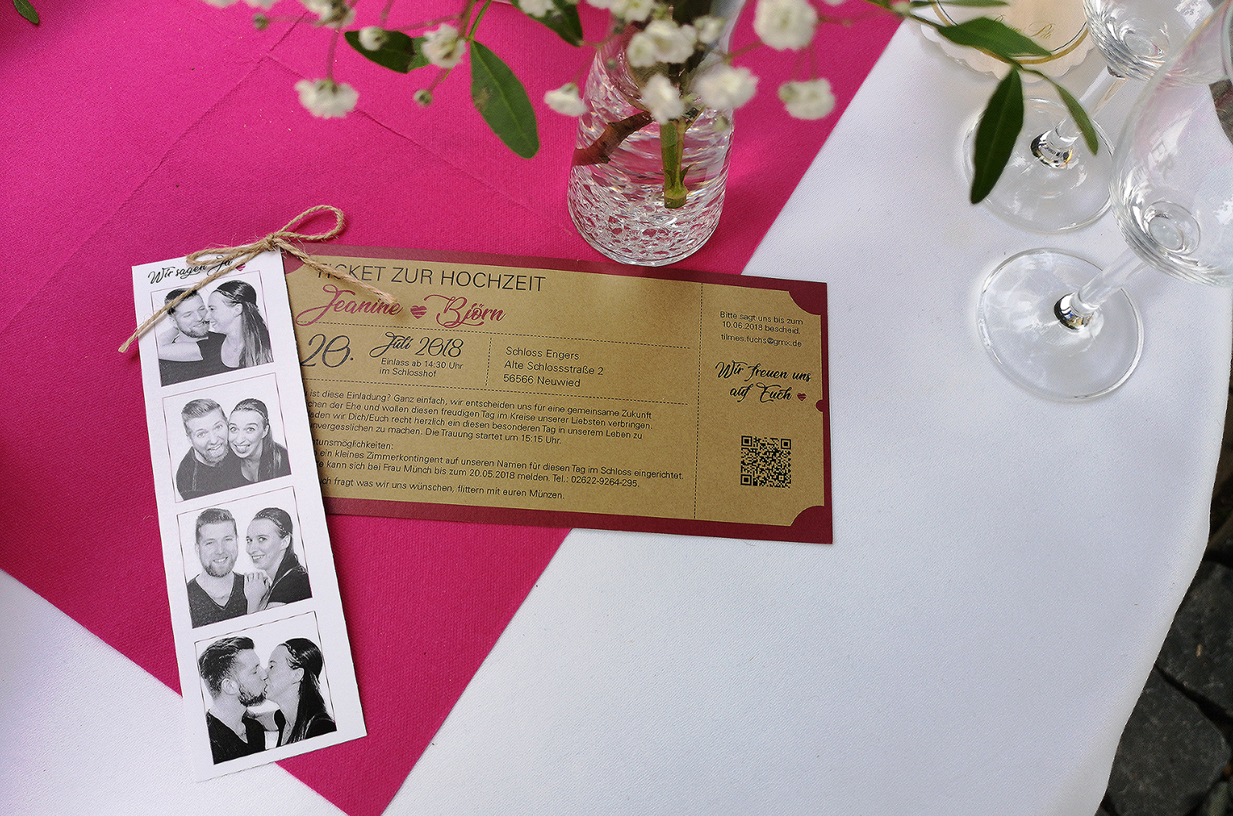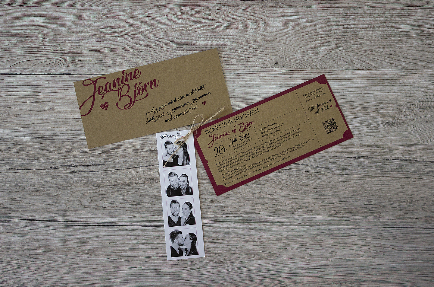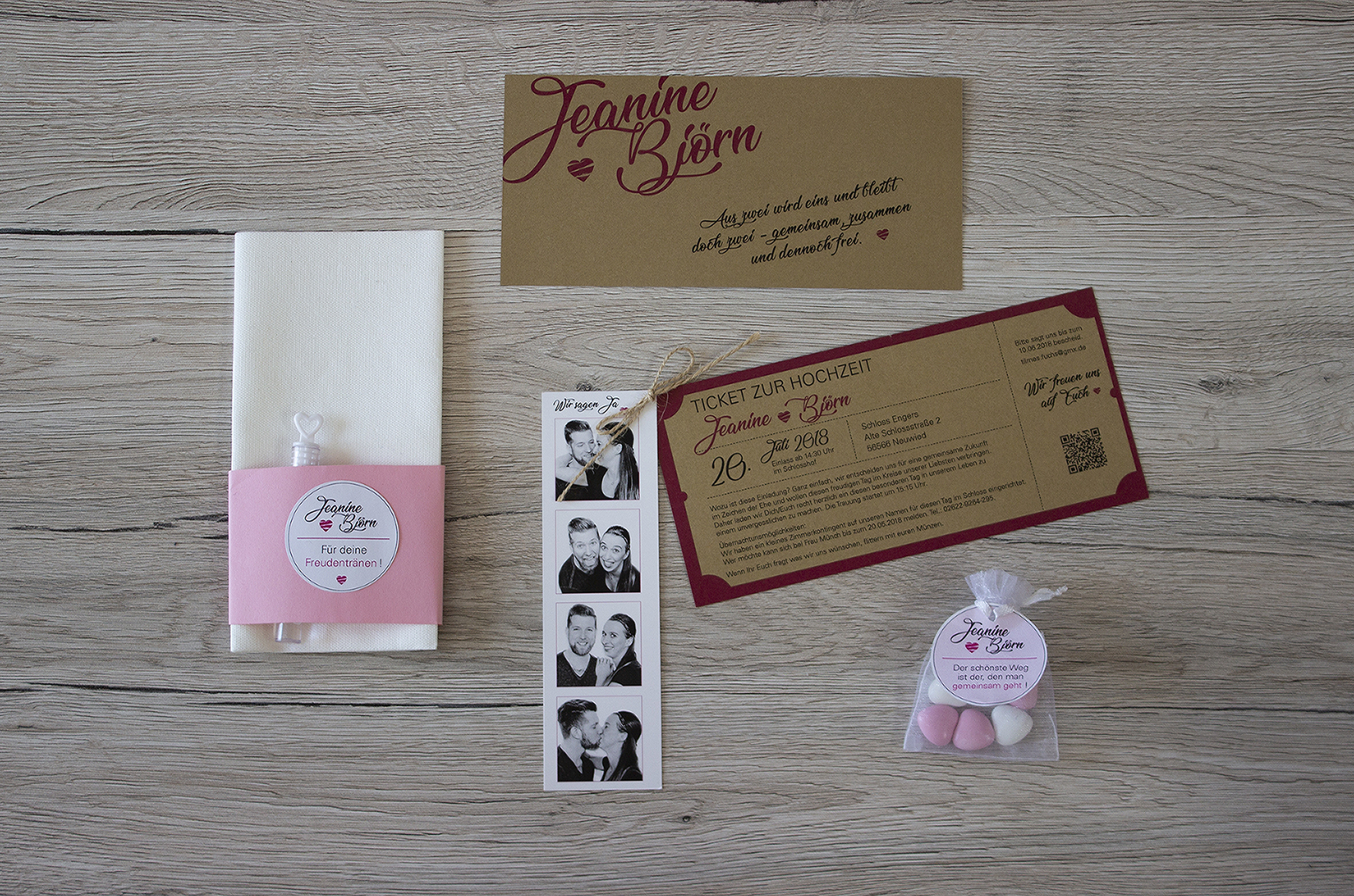 Eine komplette, aufeinander abgestimmte Hochzeitsausstattung mit Einladung, Gastgeschenke, Sitzordnung und vieles mehr